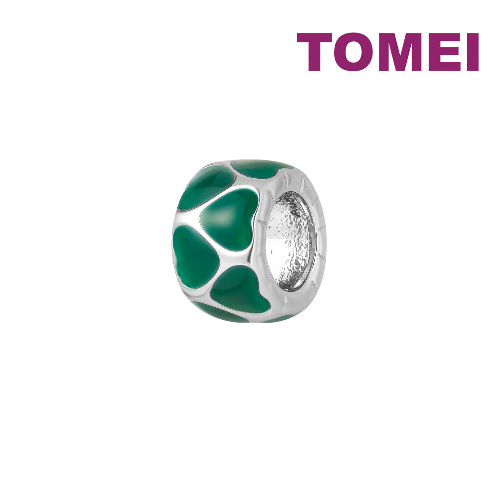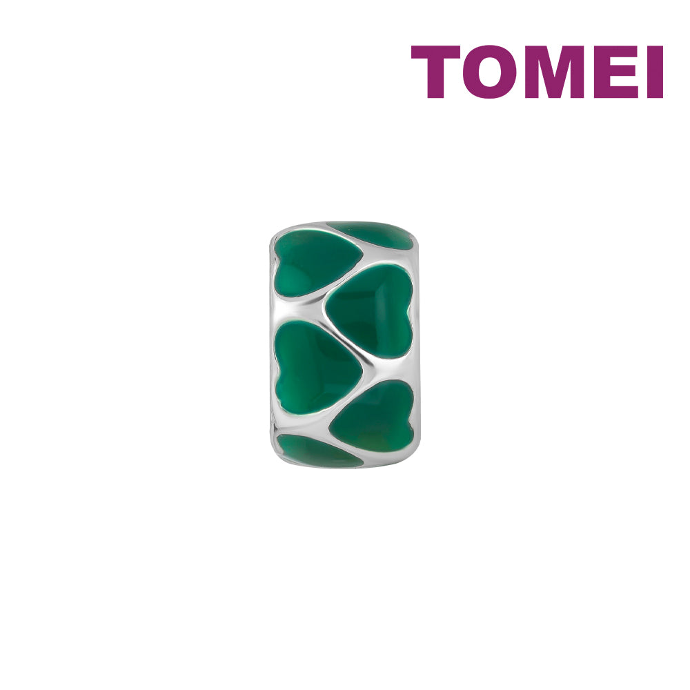 Home Charms Bedecked with Verdant Hearts Charm | Tomei White Gold 585 (14K) (P5638)