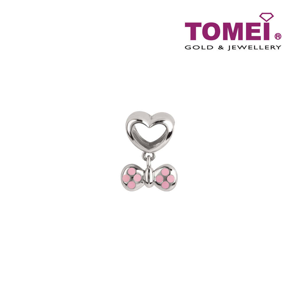 This adorably miniature ribbon which is besprinkled with the pink hue serves as a charmingly cute charm bijou motif which evokes the loving memories whilst in love that is being bound in a form of ribbon or bow.