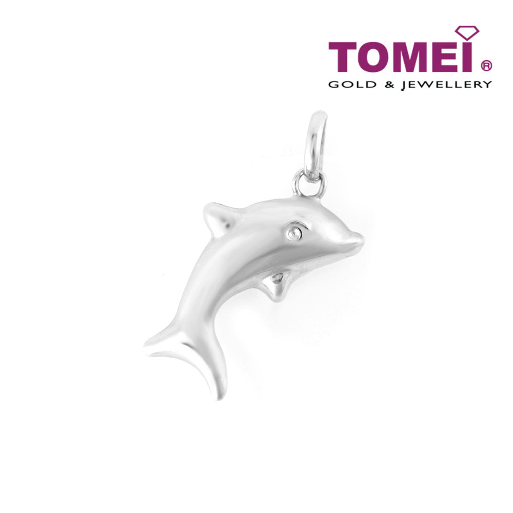 TOMEI Delightfully Joyous Dolphin Pendant, White Gold 750