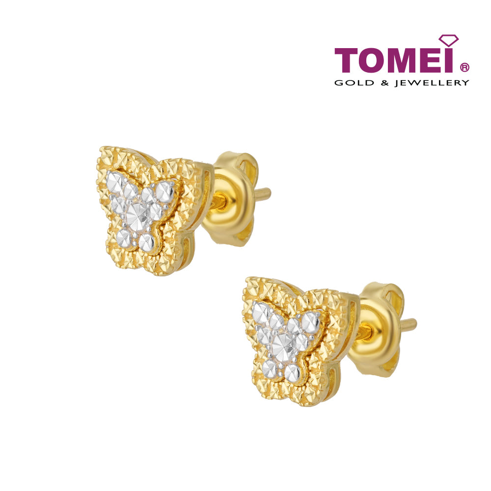 Home Product Categories Earrings TOMEI Diamond Cut Collection Butterfly Earrings, Yellow Gold 916 (9Q-YG1262E-2C)