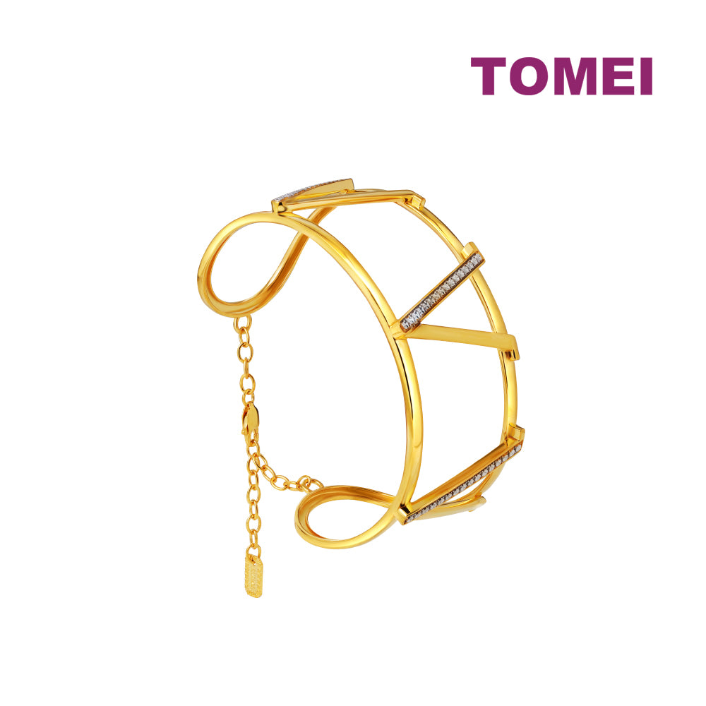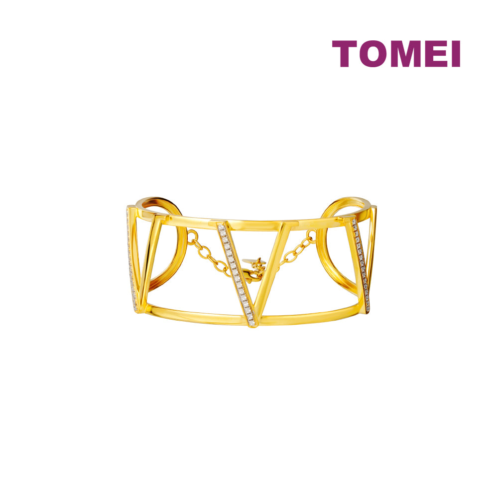 TOMEI Diamond Cut Collection Captivating V Bangle, Yellow Gold 916