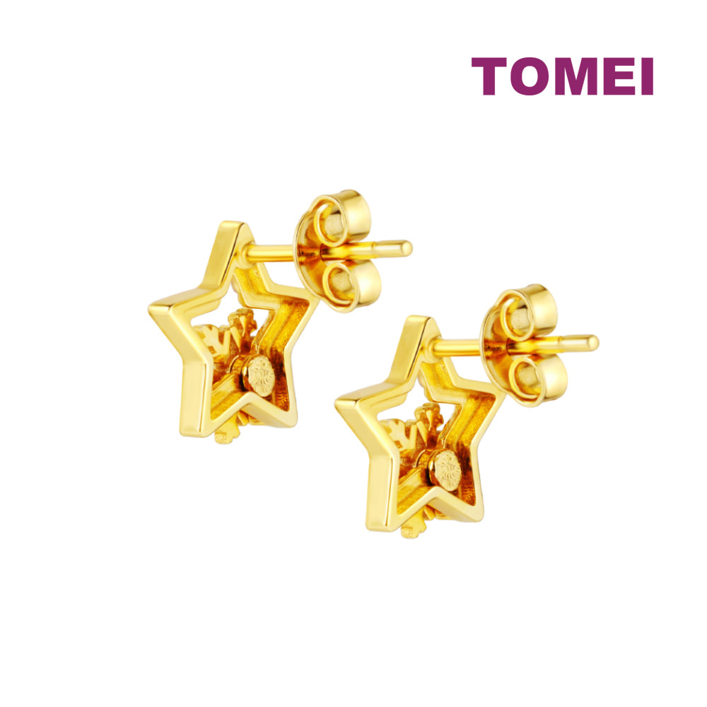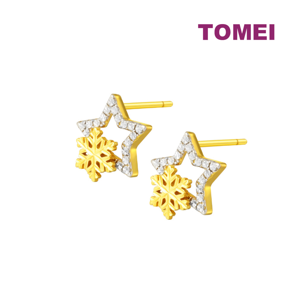 TOMEI Diamond Cut Collection Snowflake & Star Earrings, Yellow Gold 916