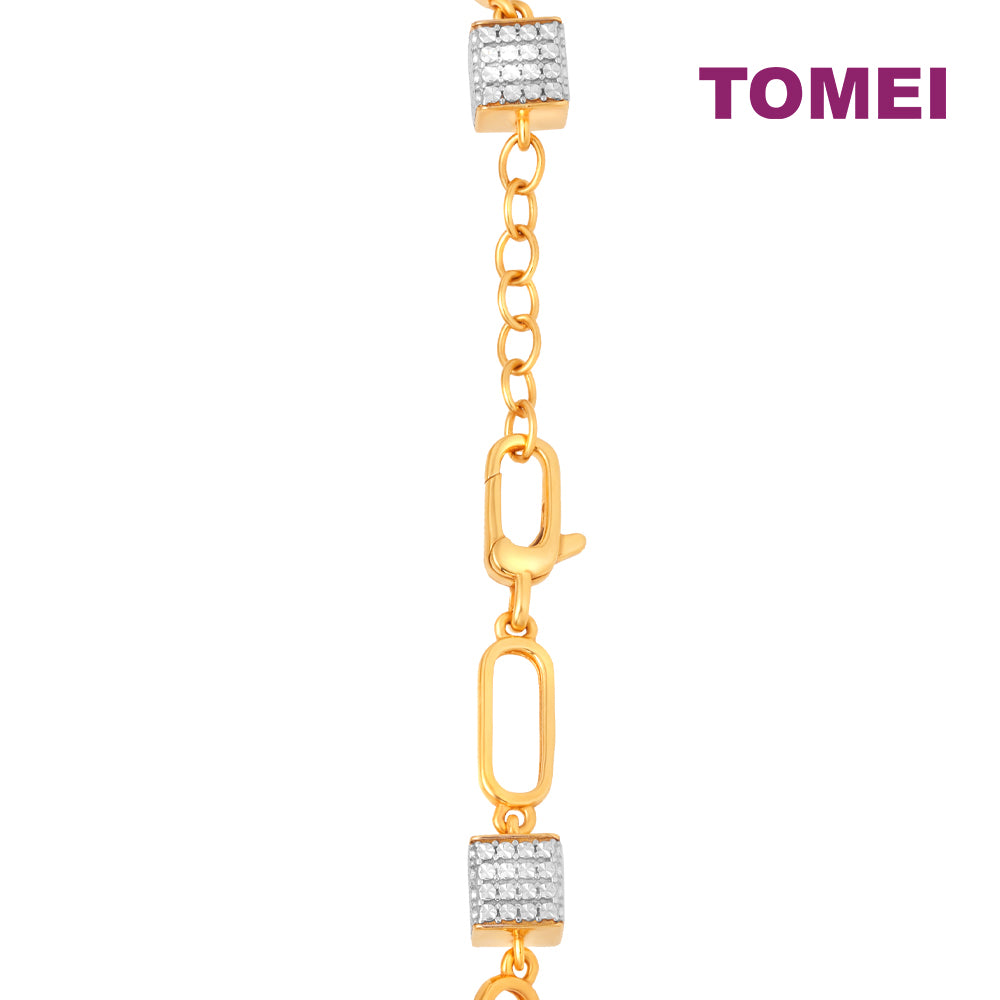 TOMEI Diamond Cut Collection Stylish Cube Bracelet, Yellow Gold 916
