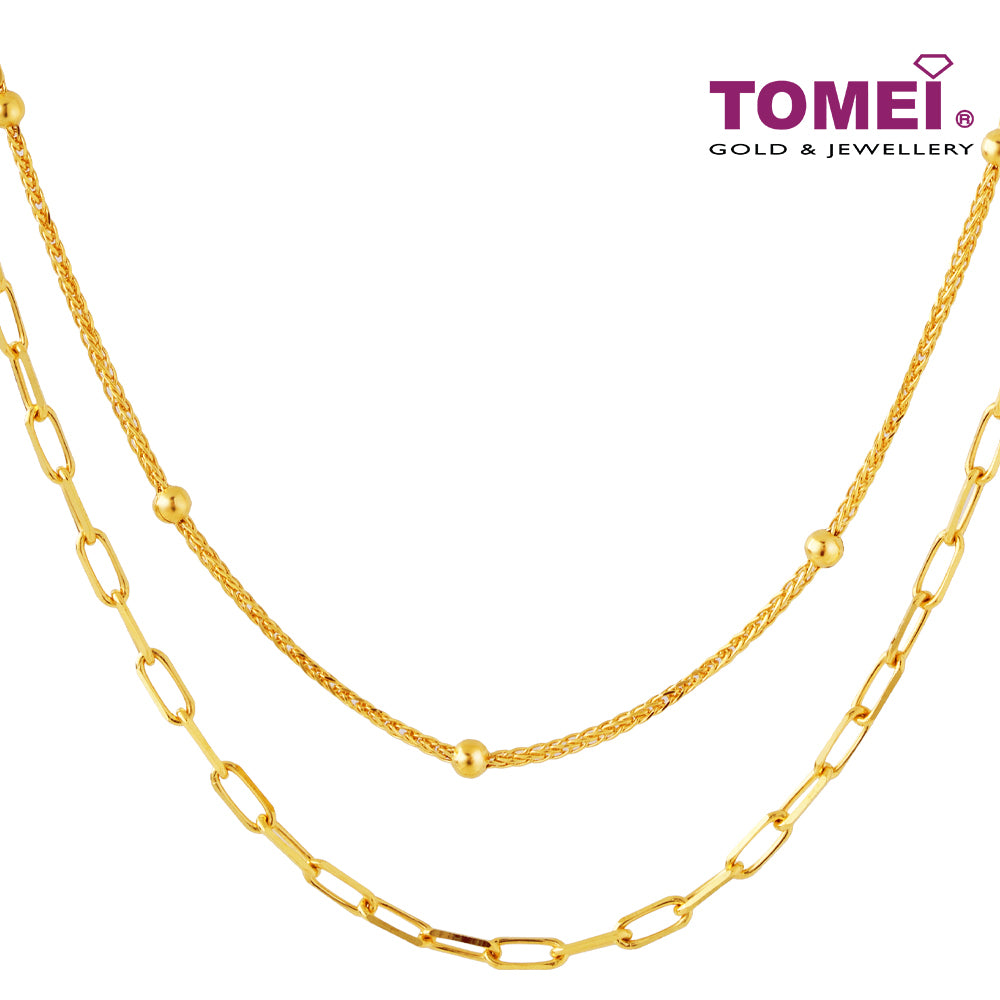 TOMEI Double-Layered Chain Necklace, Yellow Gold 916 RM5,341.00
