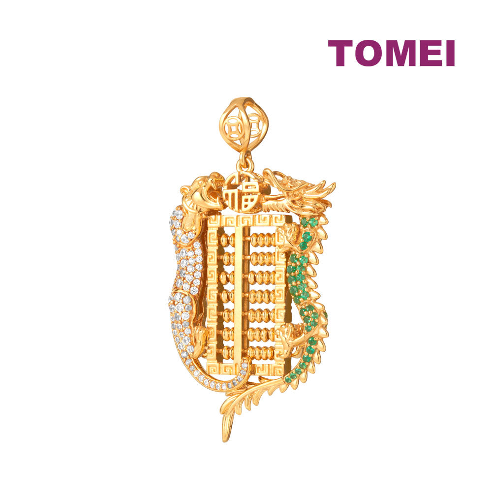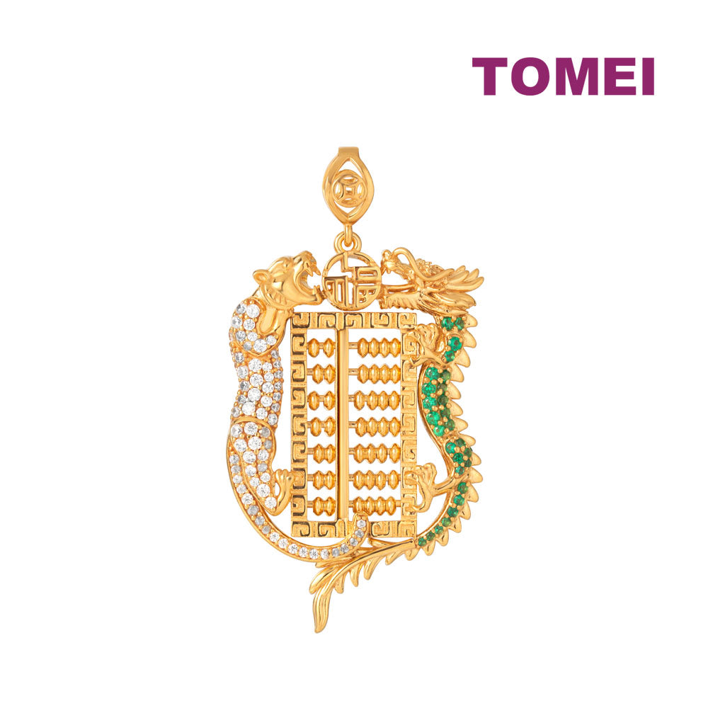Home New Arrivals TOMEI Dragon & Tiger Abacus Pendant, Yellow Gold 916