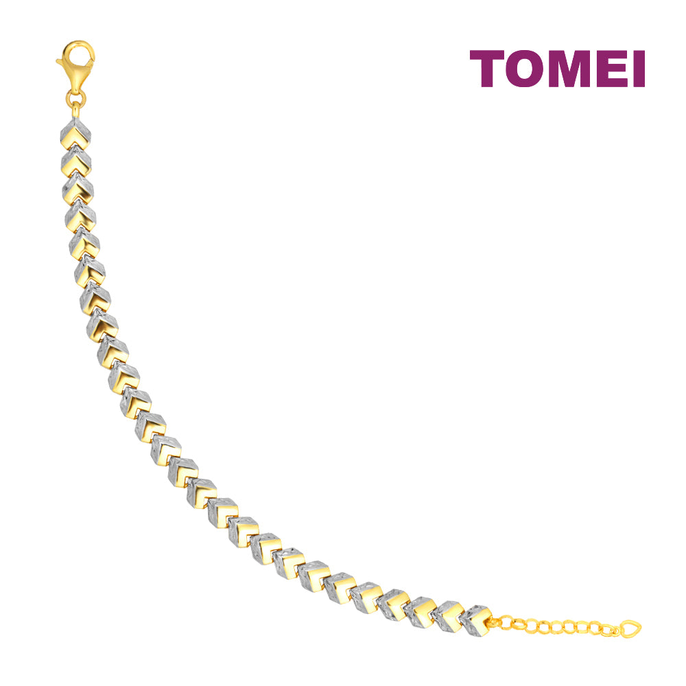 TOMEI Dual-Tone Dangling Heart Bracelet, Yellow Gold 916 RM8,245.00