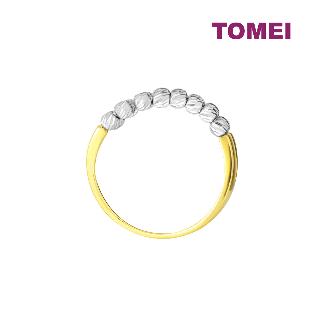TOMEI Dual-Tone Double Row White Beads Ring, Yellow Gold 916