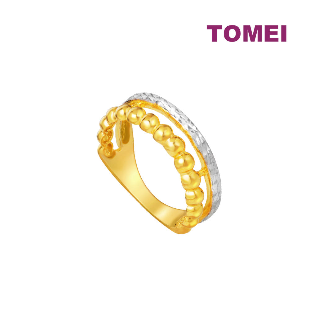 Home Product Categories Rings TOMEI Dual-Tone Ring With Beads, Yellow Gold 916
