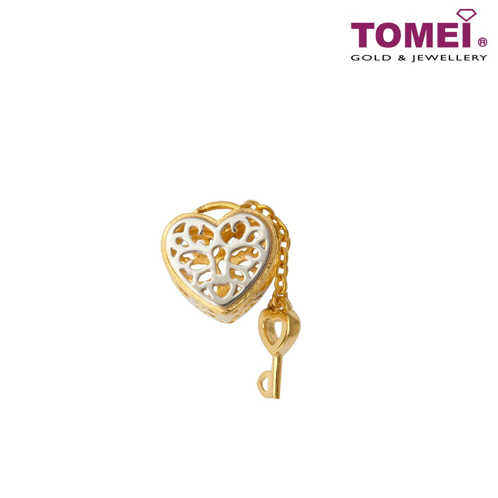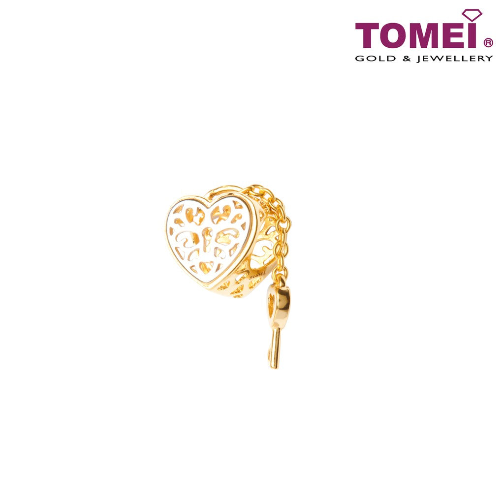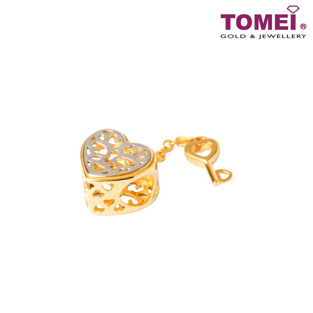 TOMEI Flaming Heart Love Lock Charm, Yellow Gold 916