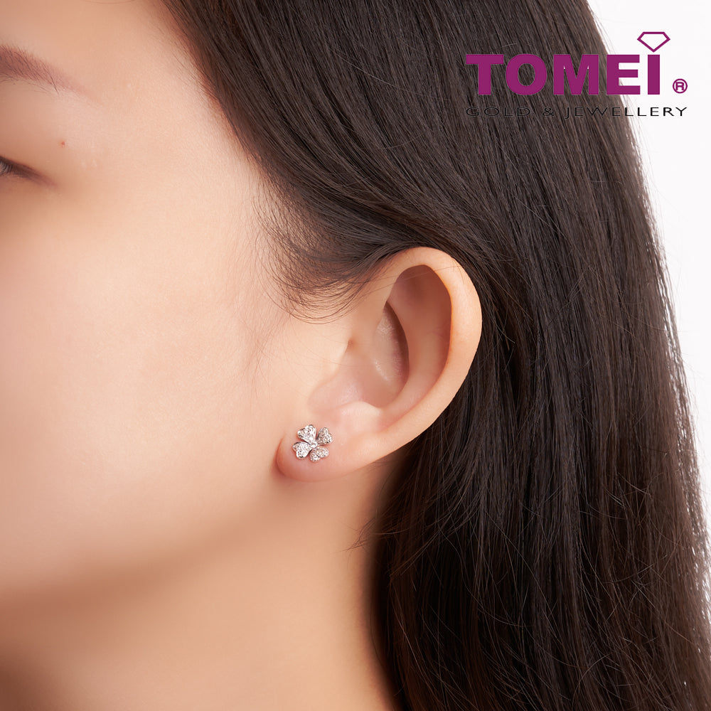 TOMEI Four Leaves Clover Diamond Earrings, White Gold 750 (E1794)