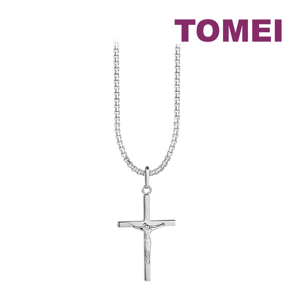 TOMEI Jesus Cross Pendant, White Gold 750