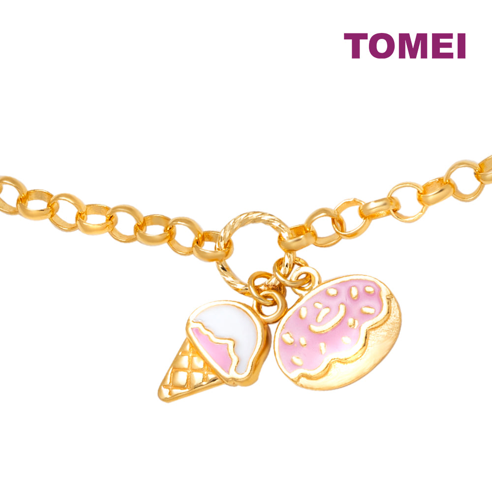 TOMEI Kids Donut & Ice-Cream Bracelet, Yellow Gold 916