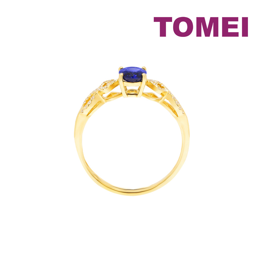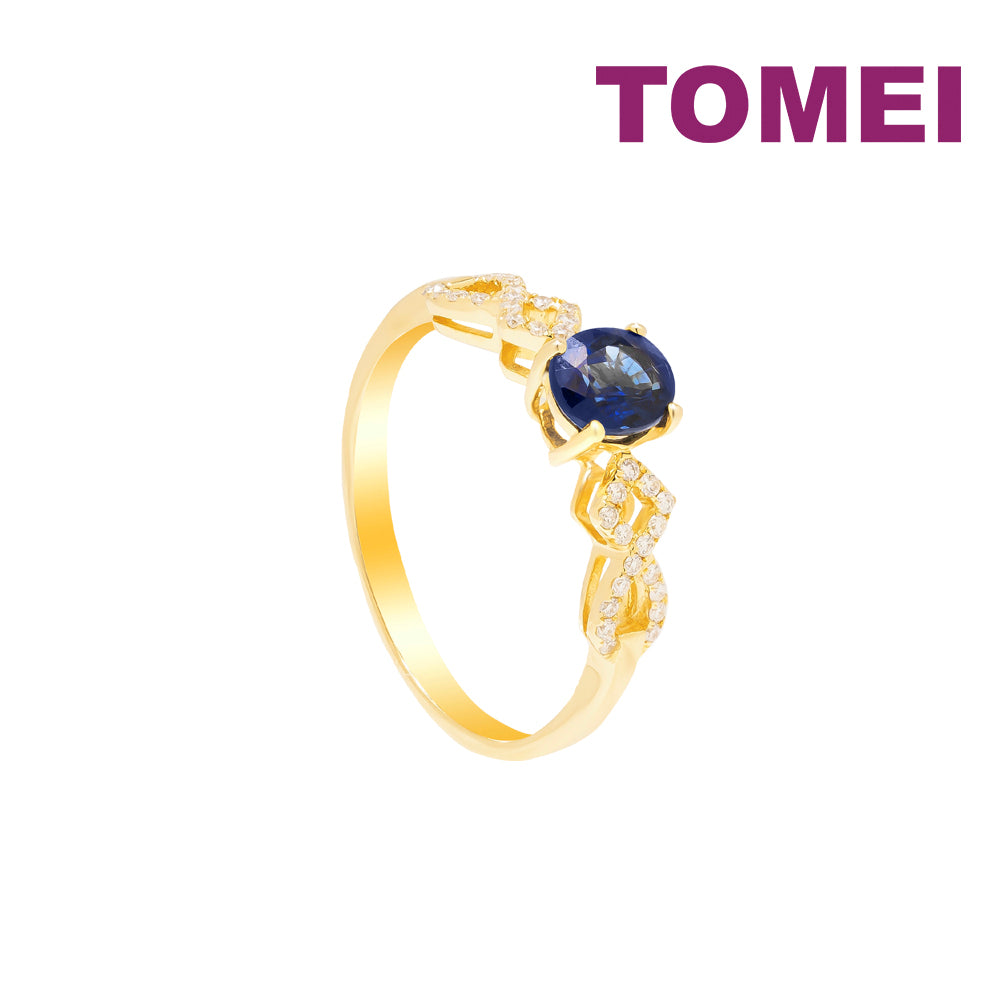TOMEI Koleksi Camellia Sapphire Diamond RIng, Yellow Gold 750