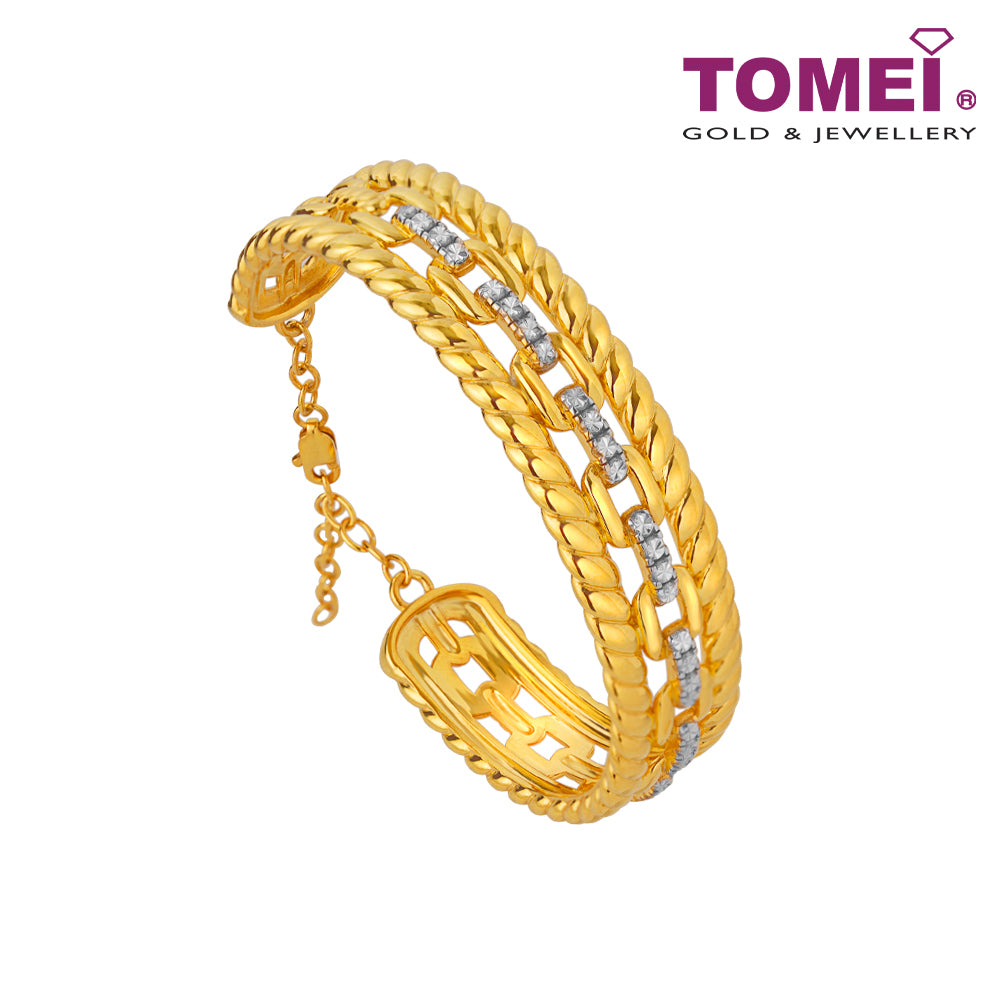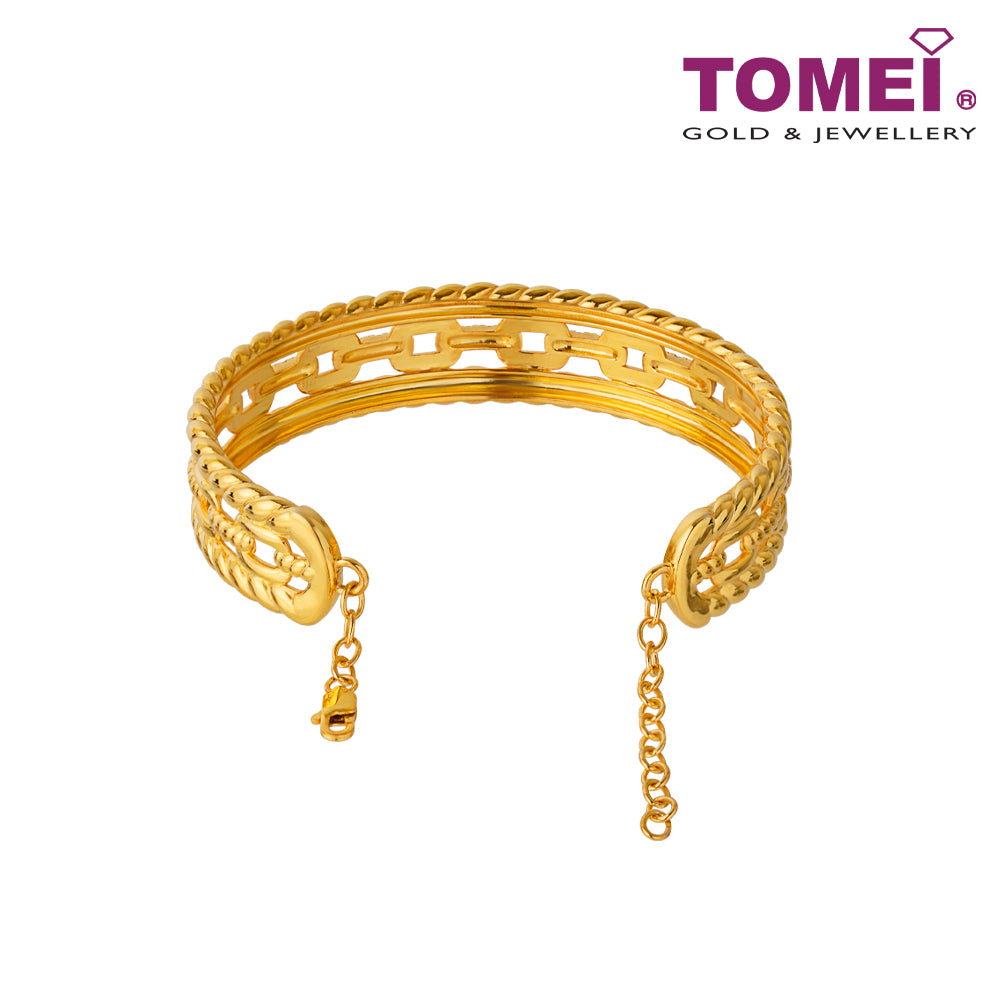 Home Tomei Gold & Jewellery TOMEI Link Chain in Twisted Parallel Bangle, Yellow Gold 916 (AS-YG1358B-2C)