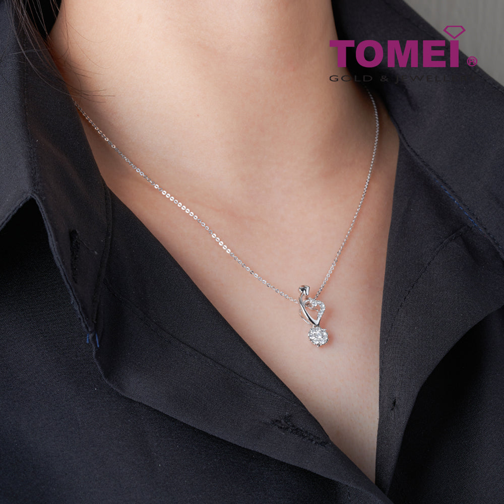 TOMEI Little Heart Collection, Diamond Pendant With Chain, White Gold 585 RM2,489.00