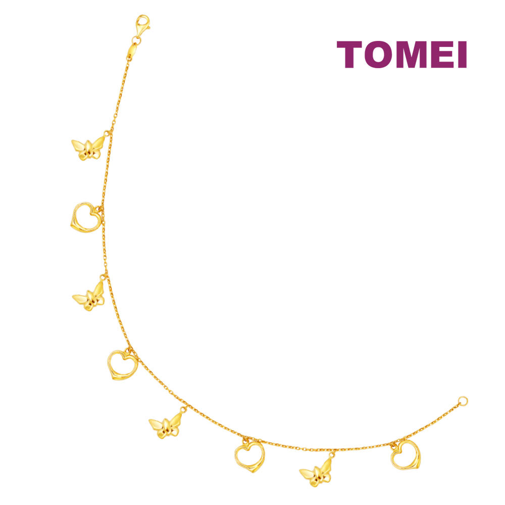 TOMEI Lusso Italia Butterfly & Heart Anklet, Yellow Gold 916