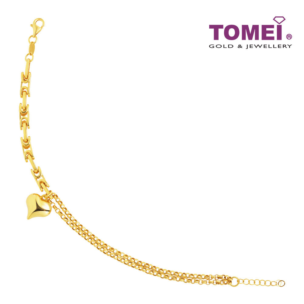 TOMEI Lusso Italia Dual-Chain Heart Bracelet, Yellow Gold 916