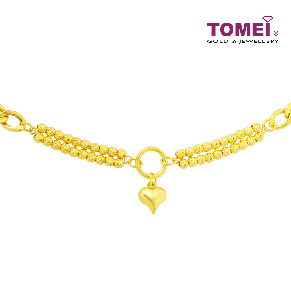 Home Product Categories Bangles & Bracelets TOMEI Lusso Italia Dual-Tier Beads and Heart Bracelet, Yellow Gold 916