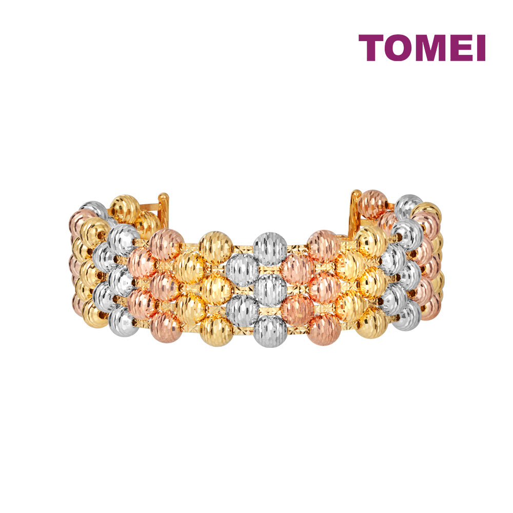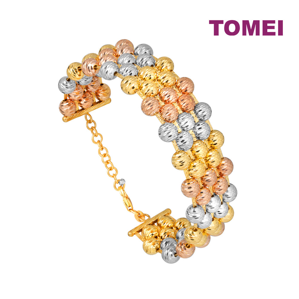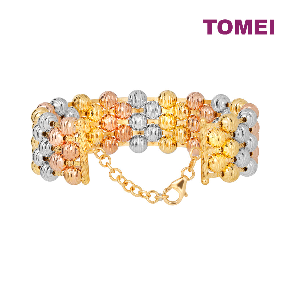 Home Product Categories Bangles & Bracelets TOMEI Lusso Italia Tri-Tone Layered Beads Bangle, Yellow Gold 916