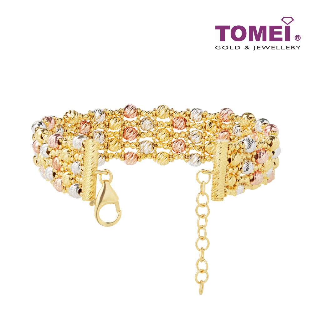 TOMEI Lusso Italia Tri-Tone Layered Beads Bangle, Yellow Gold 916 RM11,674.00