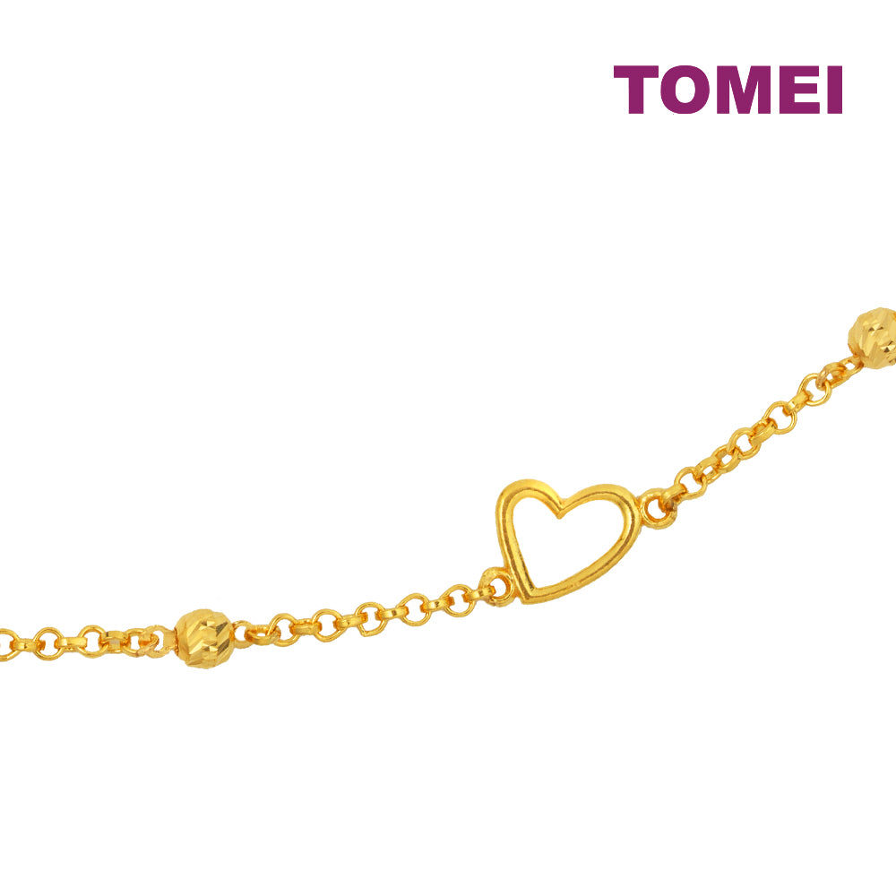 Home Product Categories Bangles & Bracelets TOMEI Minimalist Heart Bracelet, Yellow Gold 916