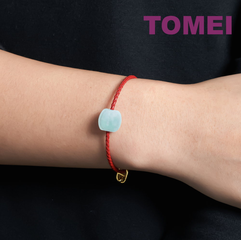 TOMEI Palace Grace Green Lu Lu Tong Charm with Red Rope Bracelet, Natural Jade