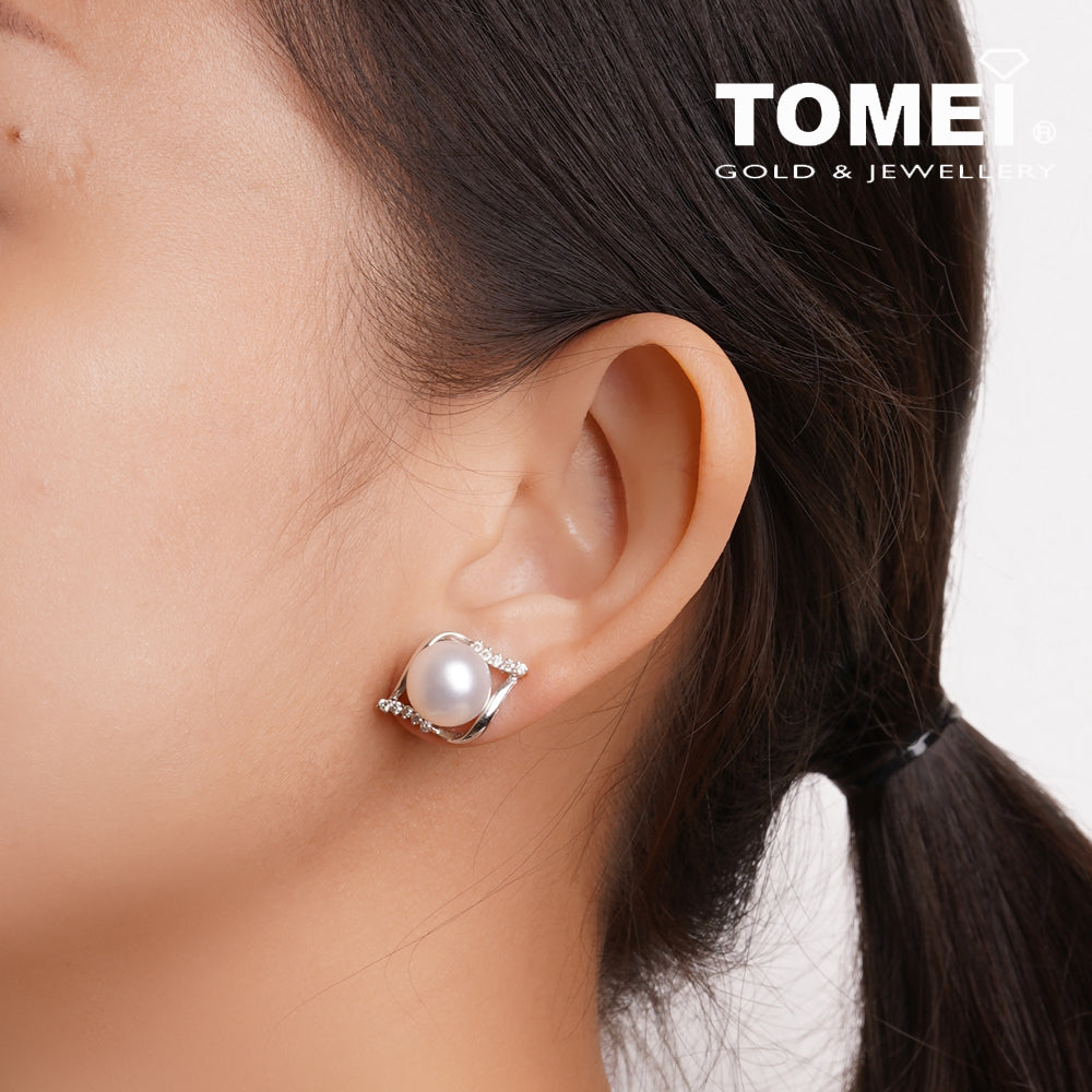 Home Product Categories Earrings TOMEI Pearl Diamond Earrings, White Gold 750 (E611)