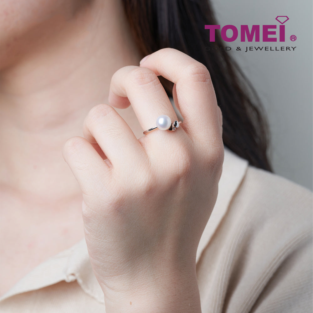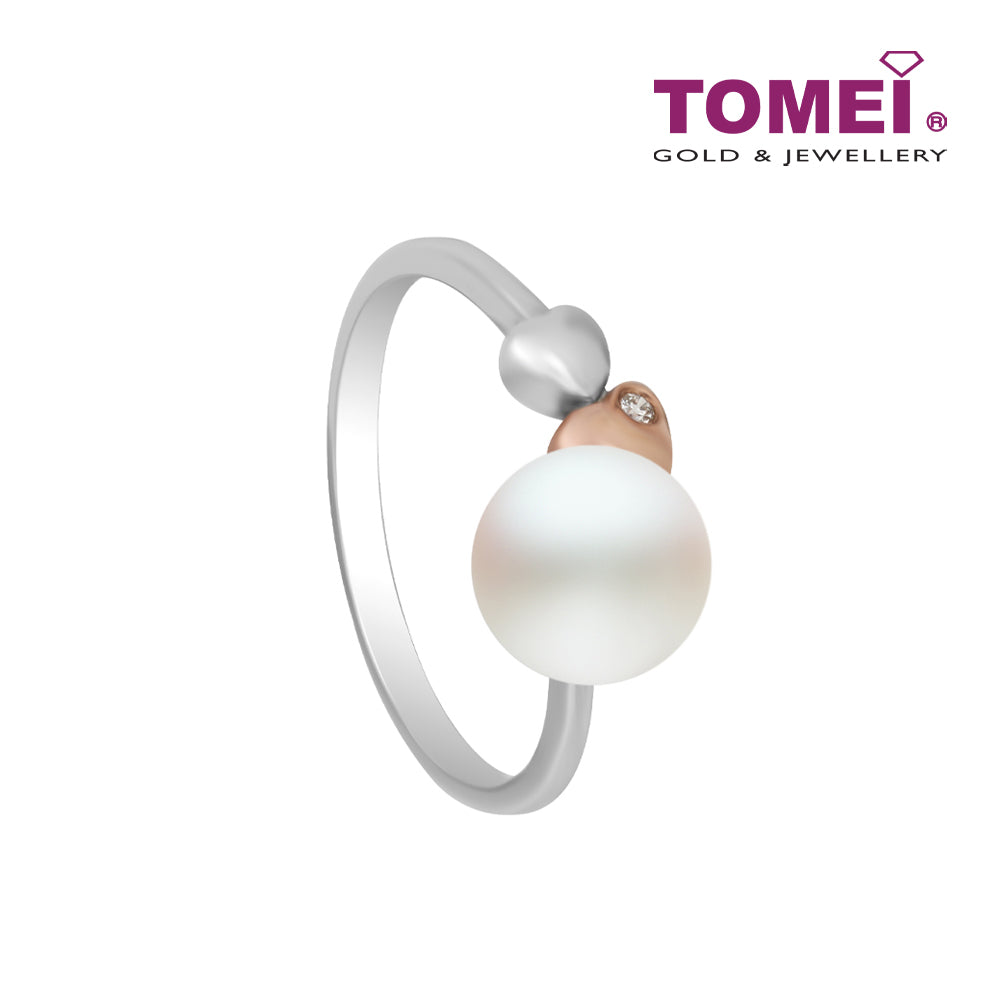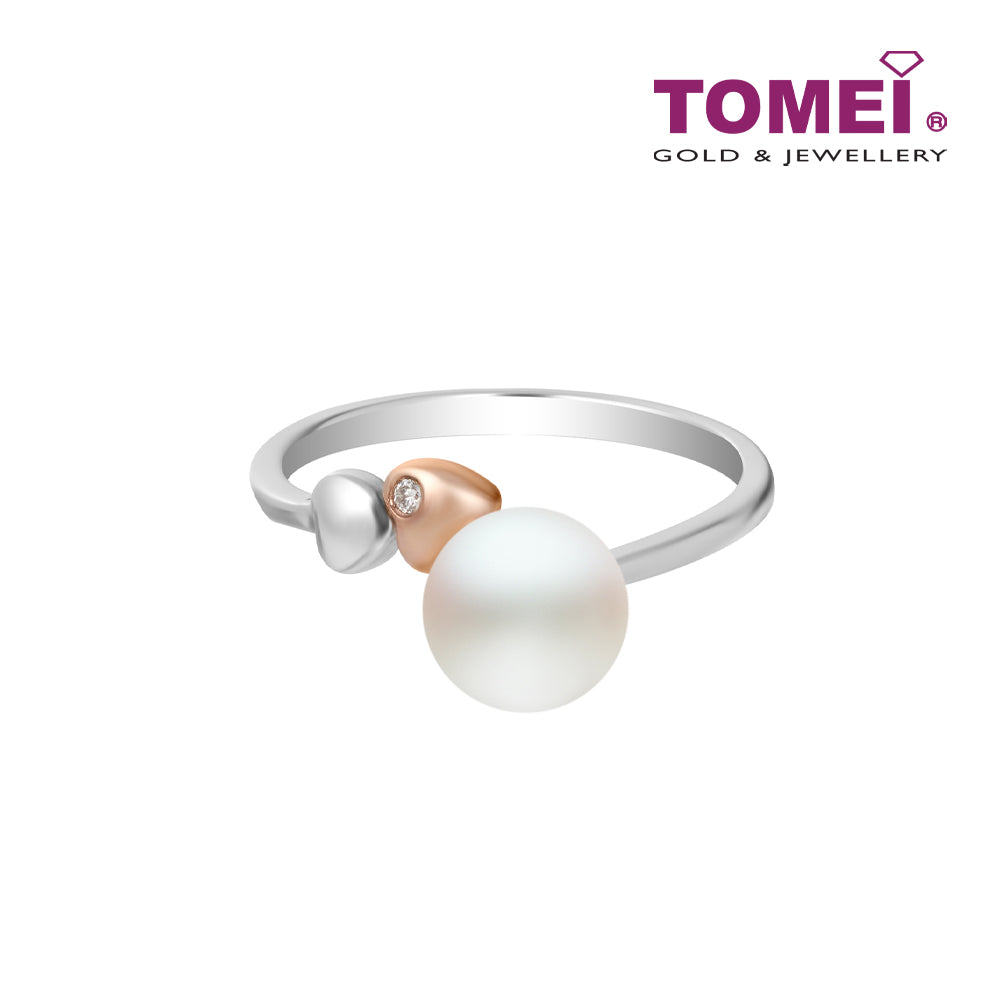 Home Product Categories Rings TOMEI Pearlette Ring, White+Rose Gold 375