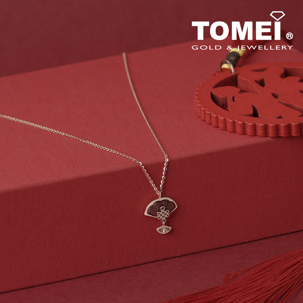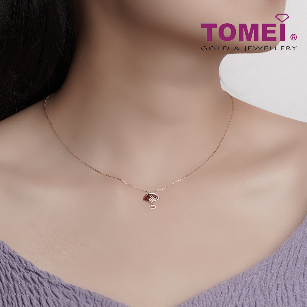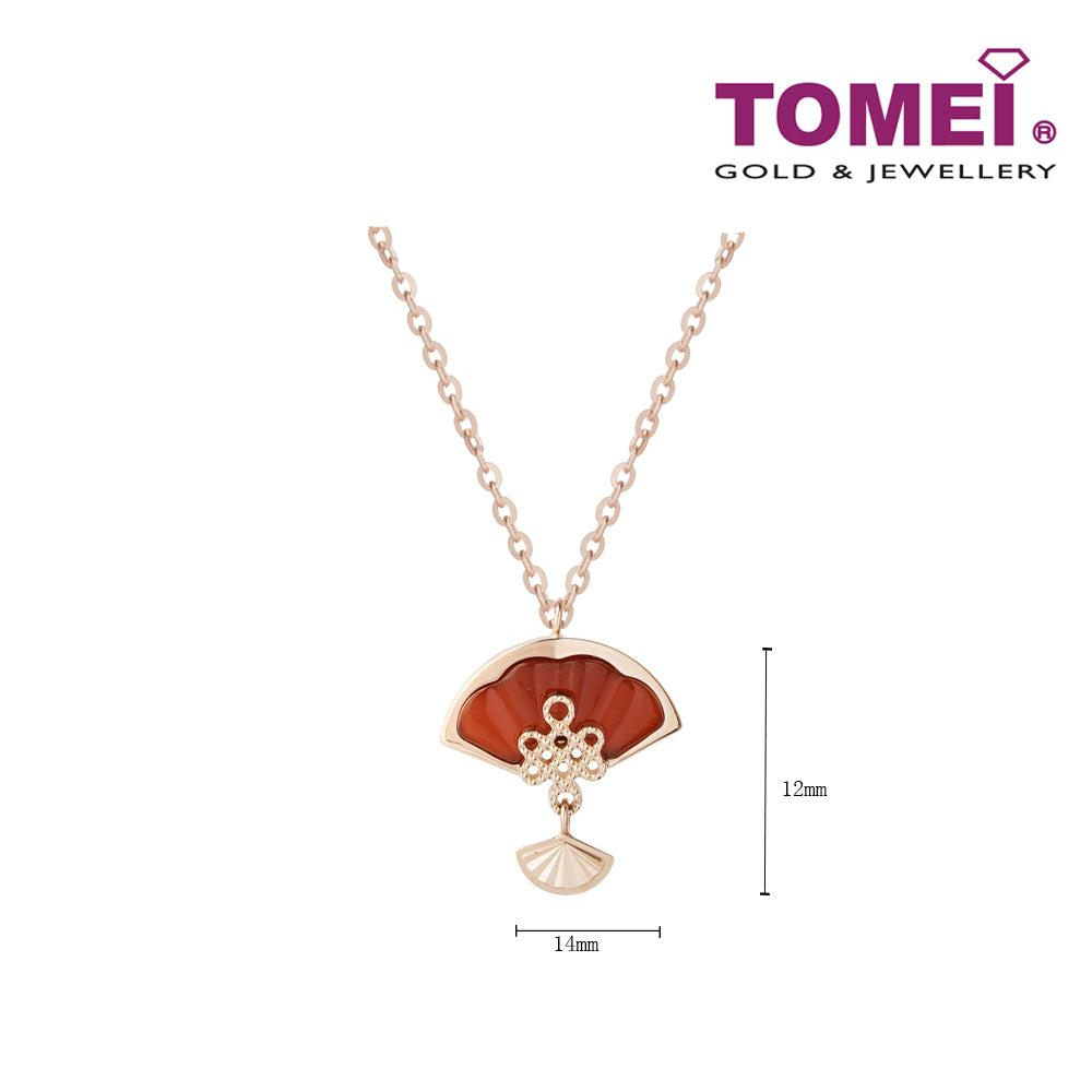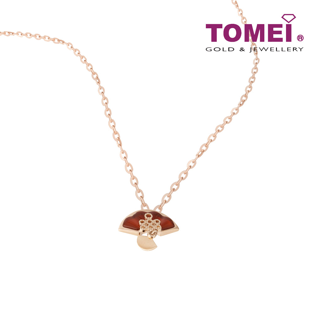 Home Product Categories Necklaces TOMEI Rouge Collection 红玉髓如意结扇子 Carnelian Ruyi Knot Palm Fan Necklace, Rose Gold 750