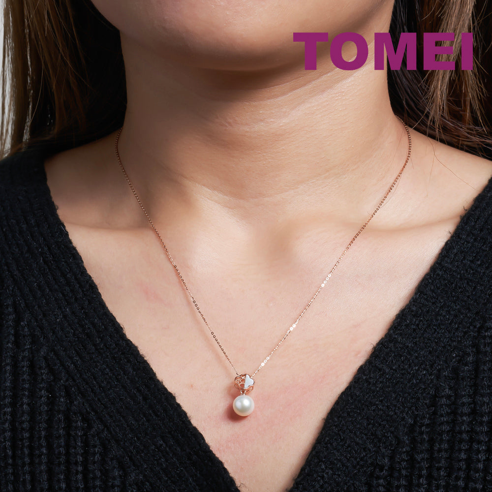 TOMEI Rouge Collection Lucky Leave Pearl Necklace, Rose Gold 750