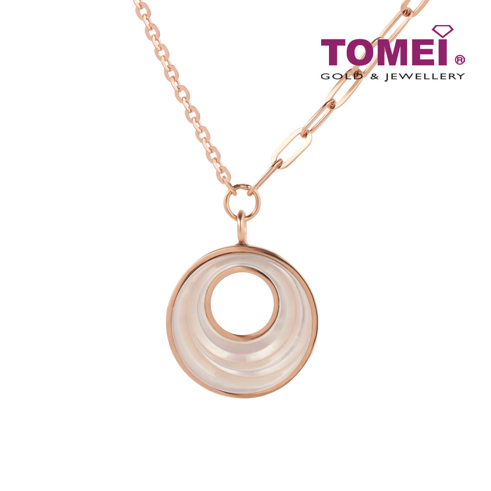 Home Product Categories Necklaces TOMEI Rouge Collection, Nacre Dwi-side Circle Necklace, Rose Gold 750