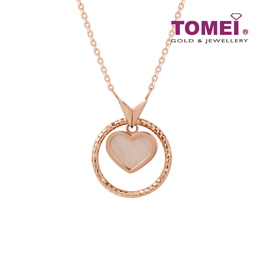 Home Product Categories Necklaces TOMEI Rouge Collection, Nacre Heart in Circle Necklace, Rose Gold 750