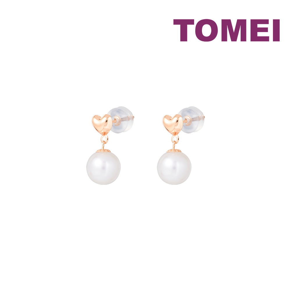 TOMEI Rouge Collection Petite Love Pearl Earrings, Rose Gold 750