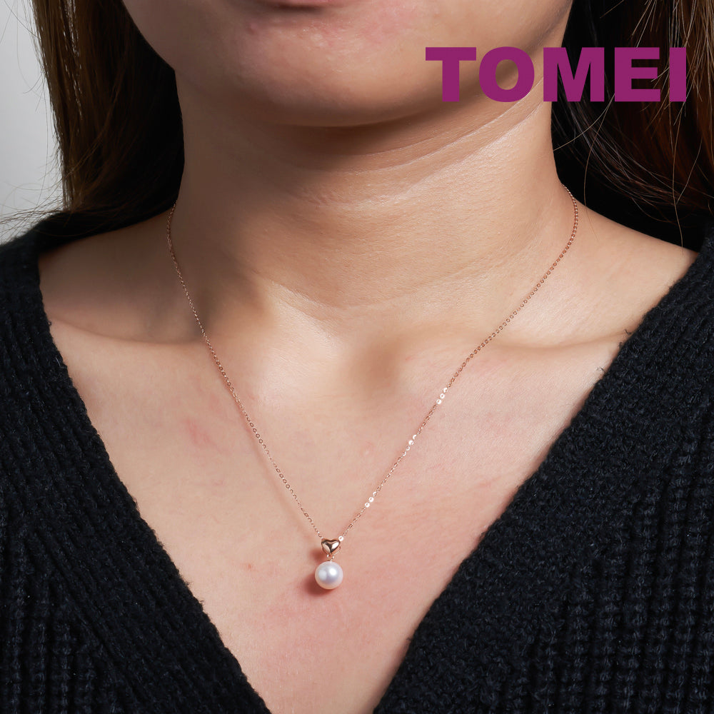 TOMEI Rouge Collection Petite Love Pearl Necklace, Rose Gold 750
