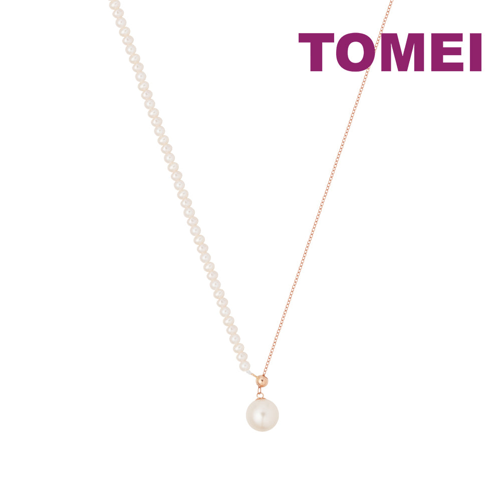 TOMEI Rouge Collection Stylish Pearl Necklace, Rose Gold 750