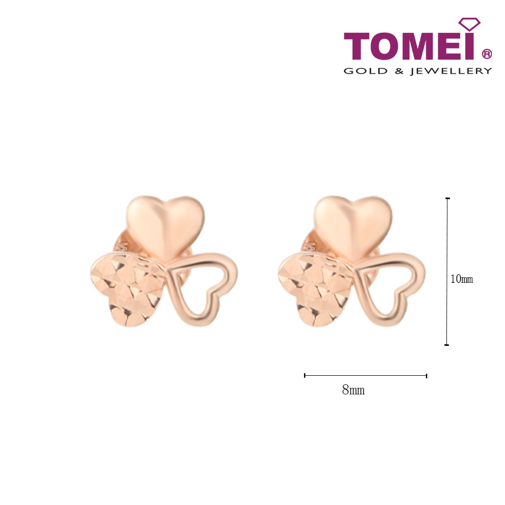 TOMEI Rouge Collection, Three Leaves Clover Earrings, Rose Gold 750
