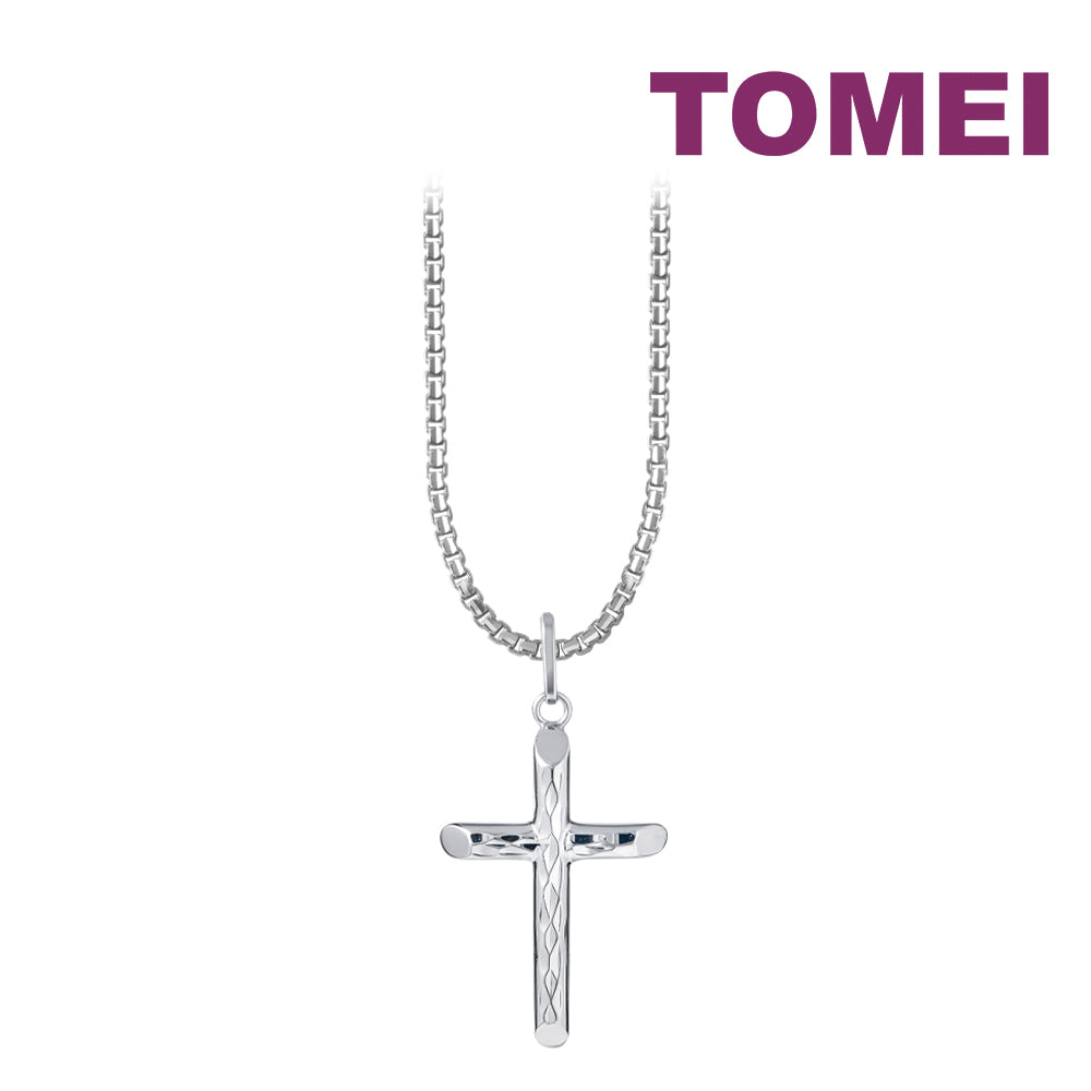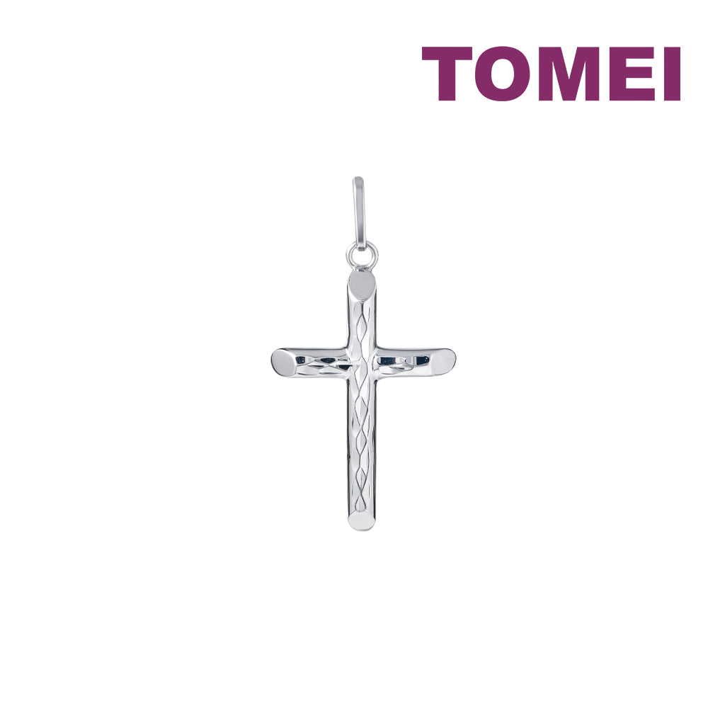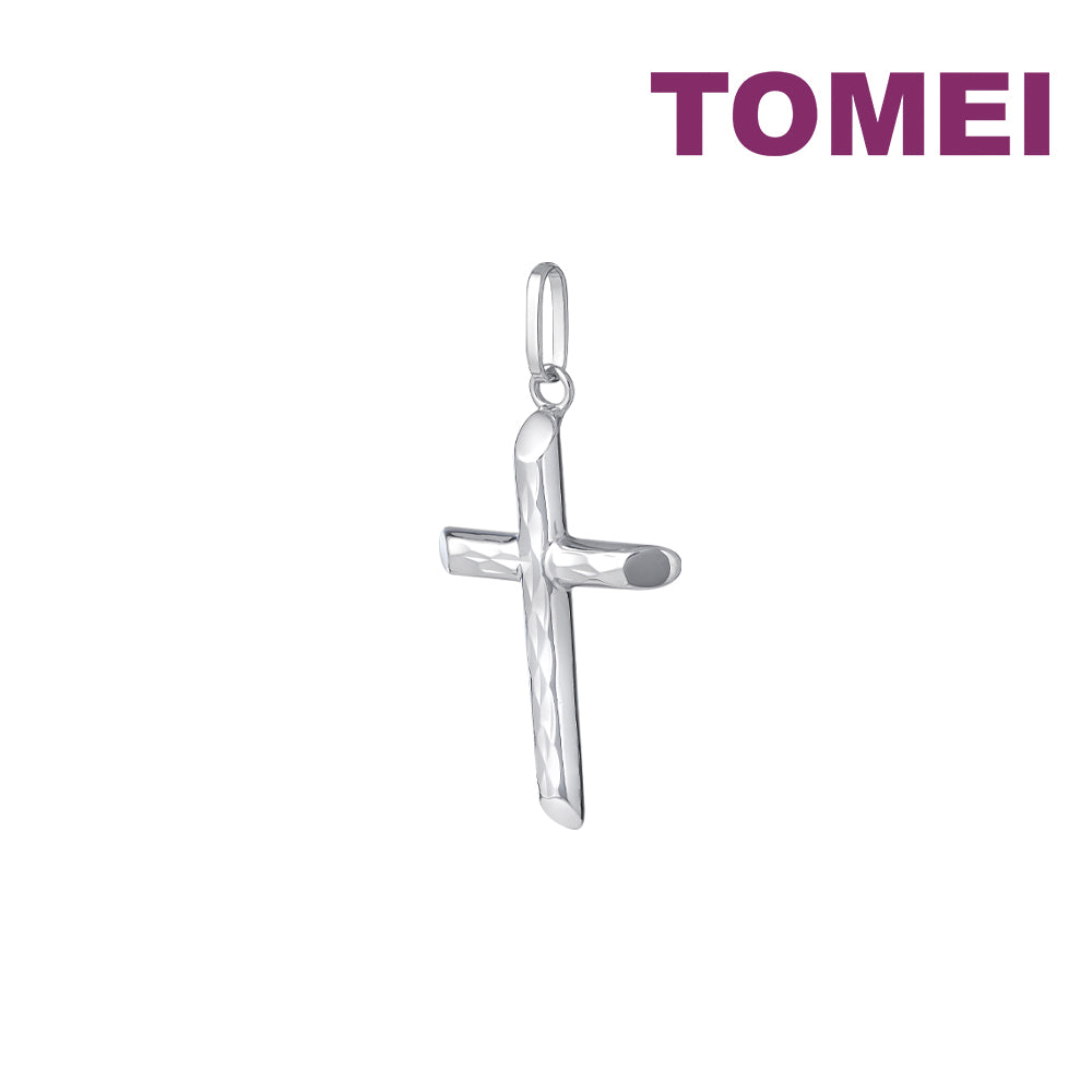 TOMEI Simply Cross Pendant, White Gold 750
