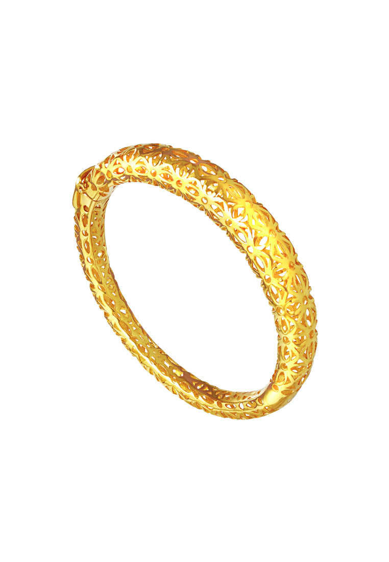 Home EID 2024 Collection TOMEI Sri Puteri Collection Flower Bangle, Yellow Gold 916