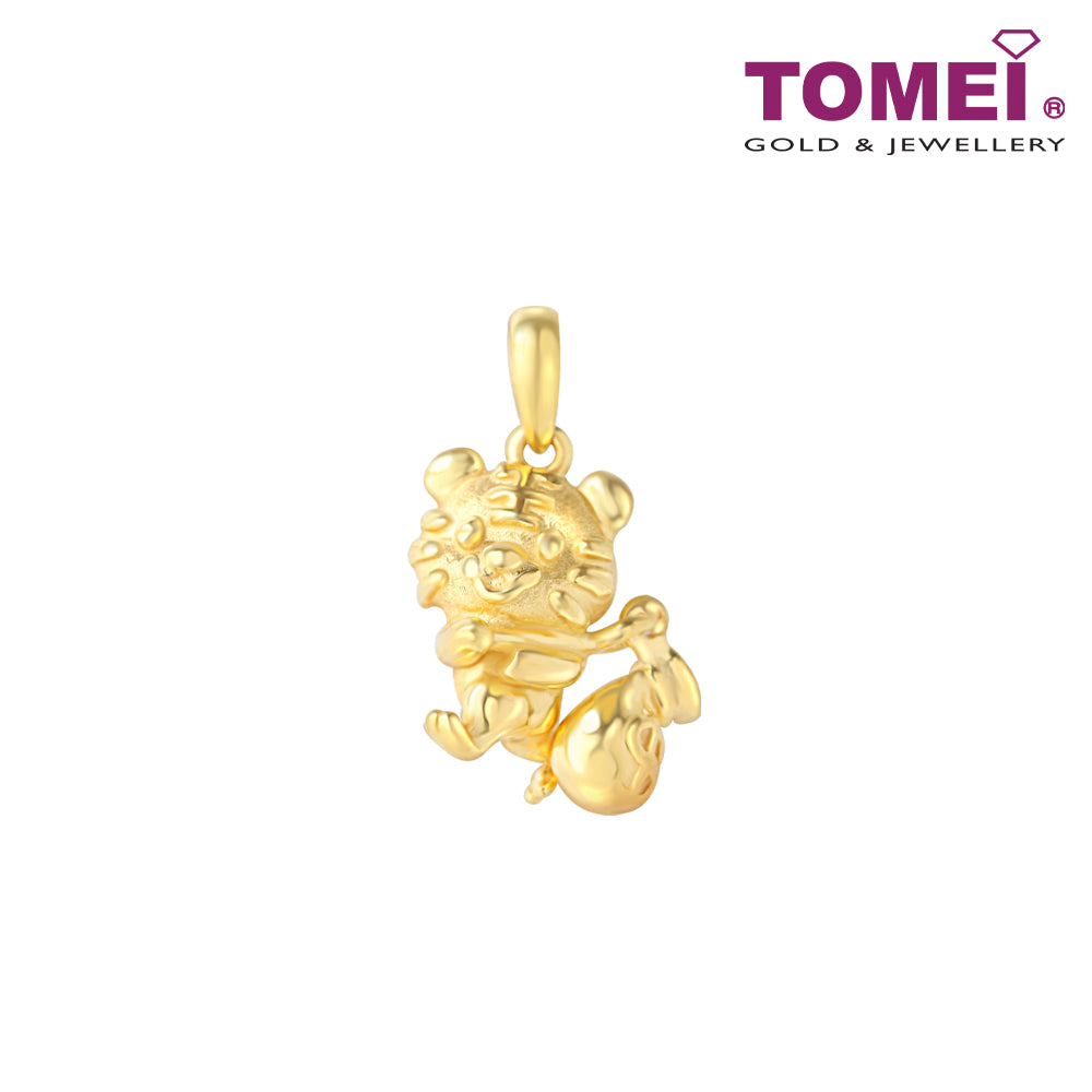 TOMEI TIger And Money Bag Pendant, Yellow Gold 916