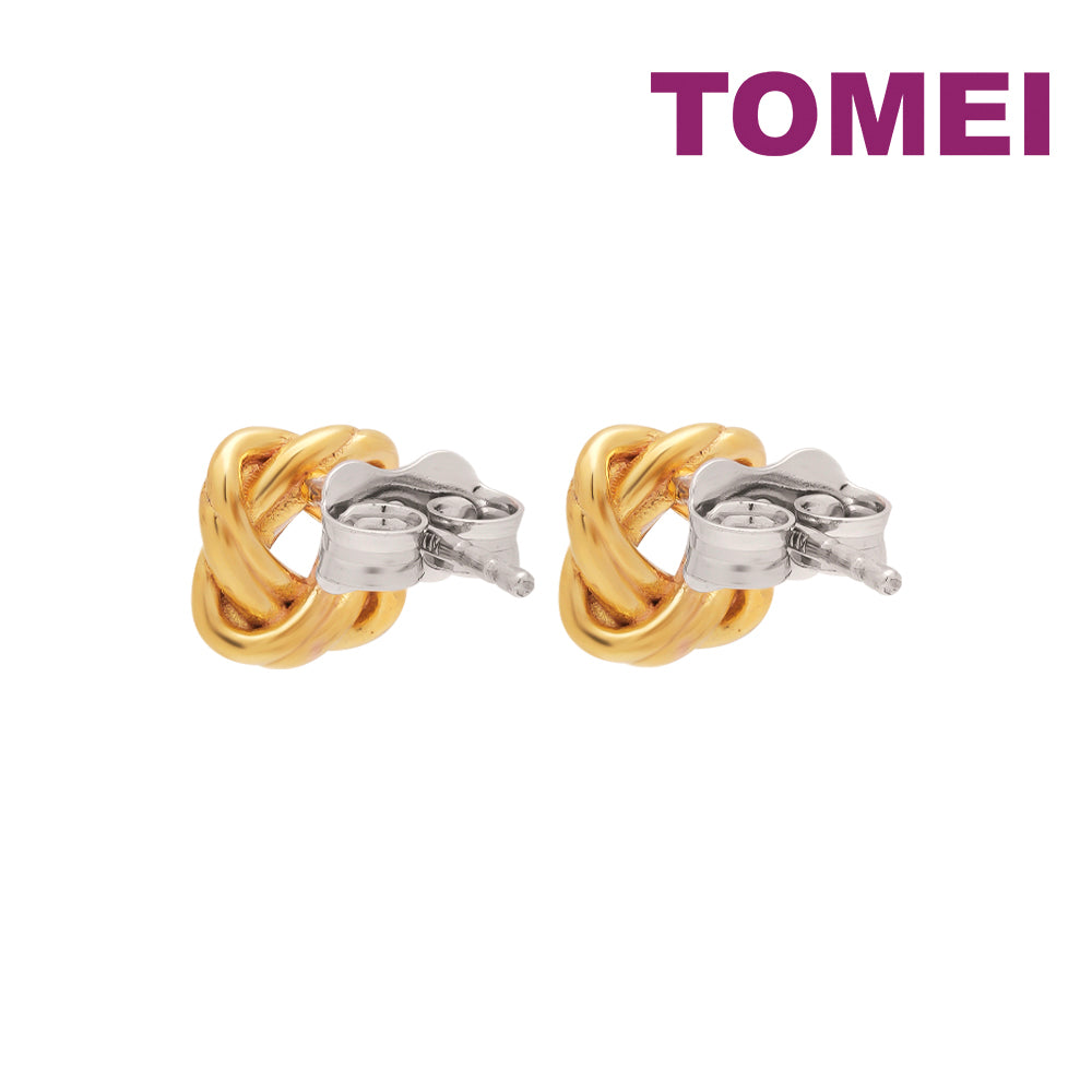 TOMEI Trio Tone Rounded Knot Earrings, Gold 585 RM892.00