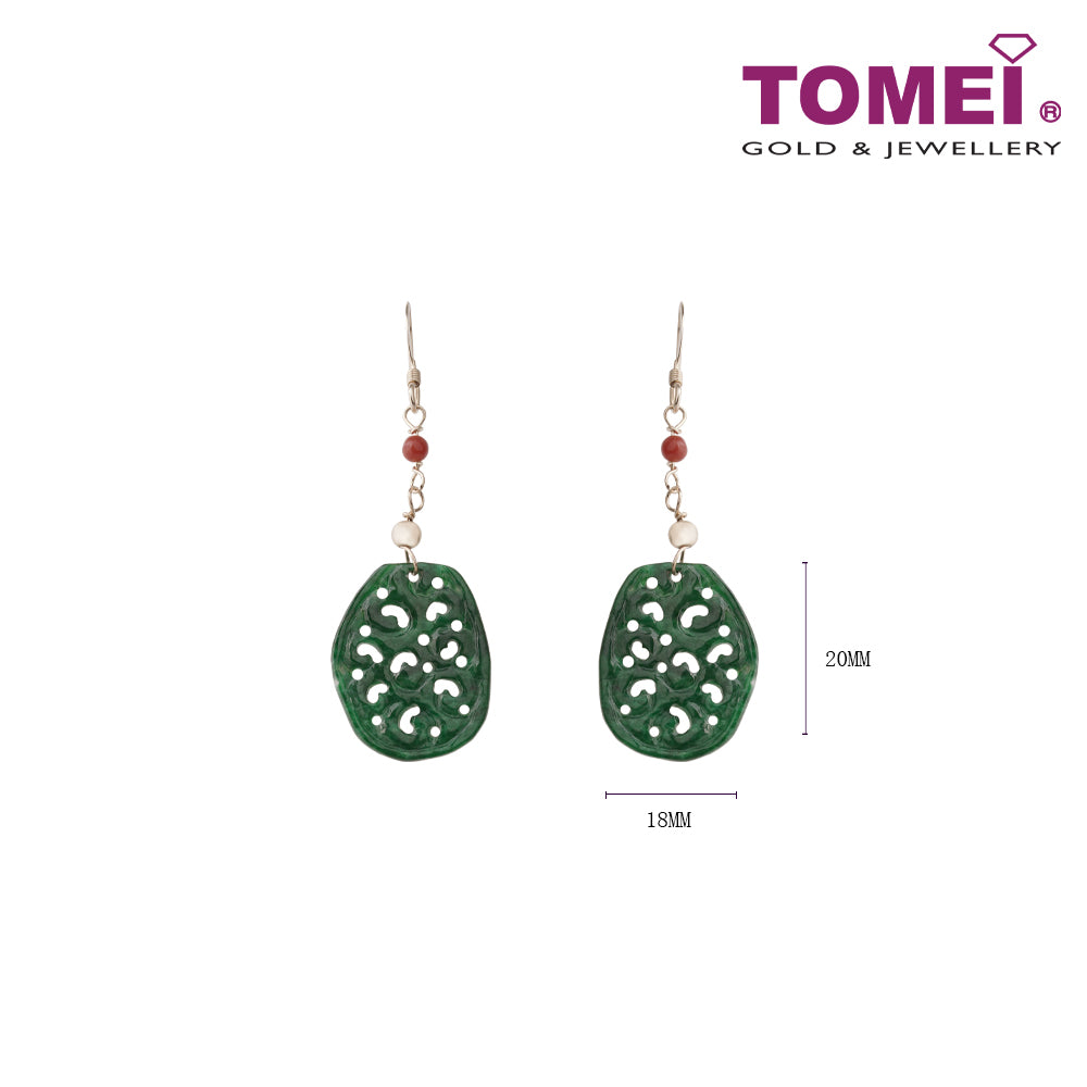Home Product Categories Earrings TOMEI Unique Carving Jade A Dangling Earrings, Dark Green I Yellow Gold 585 (J30000056)