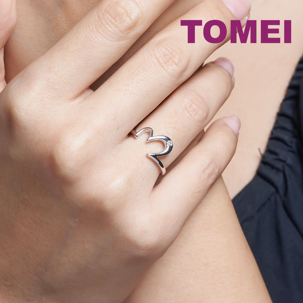 Home Product Categories Rings TOMEI Wavy Diamond Ring, White Gold 375