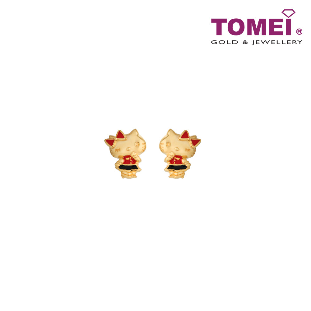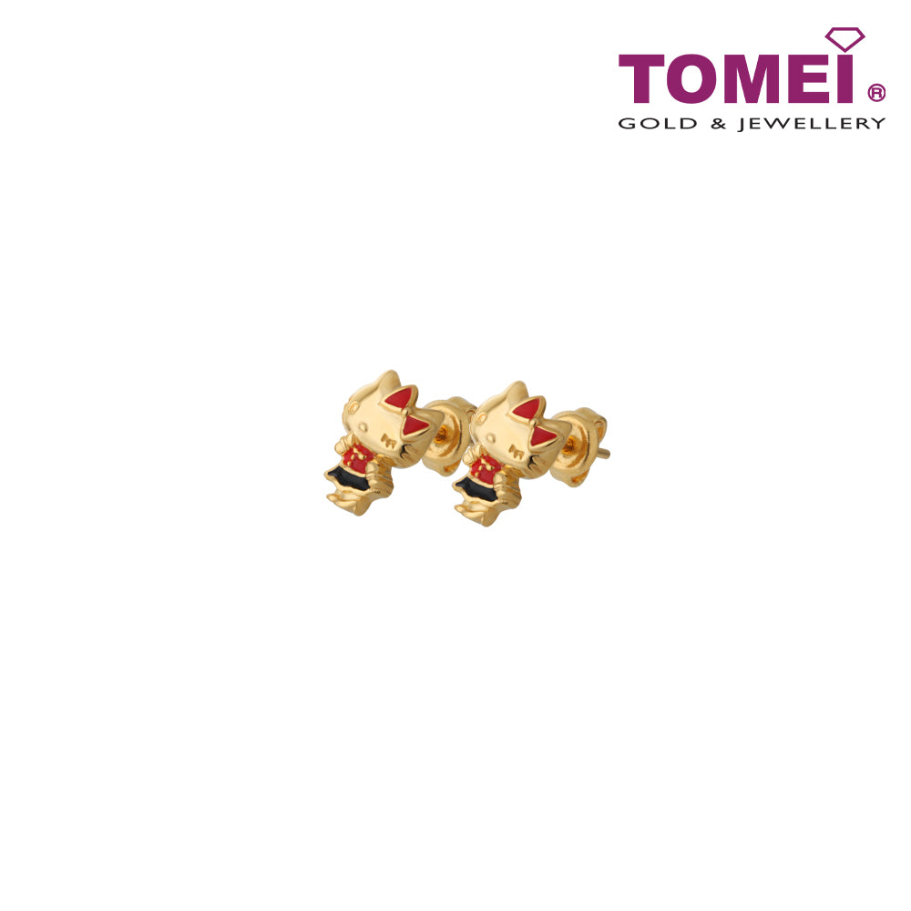 TOMEI x Hello Kitty in Red Earrings, Yellow Gold 916 (HK-YG1180E-EC-2.35G)