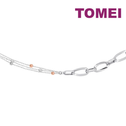 TOMEI Beads Chain Bracelet, White+Rose Gold 585