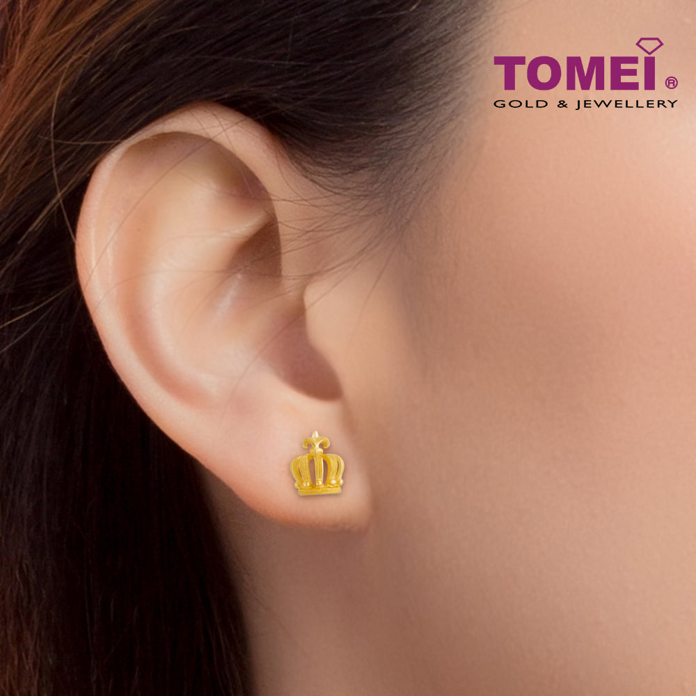 [TOMEI x Prima Gold] Crown Earrings, Yellow Gold 999