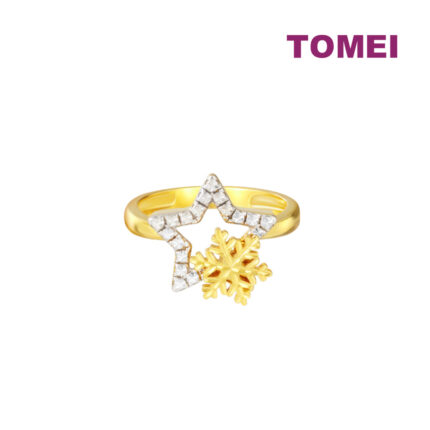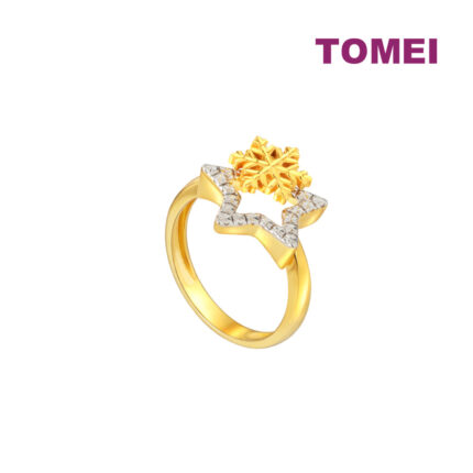 TOMEI Diamond Cut Collection Snowflake & Star Ring, Yellow Gold 916